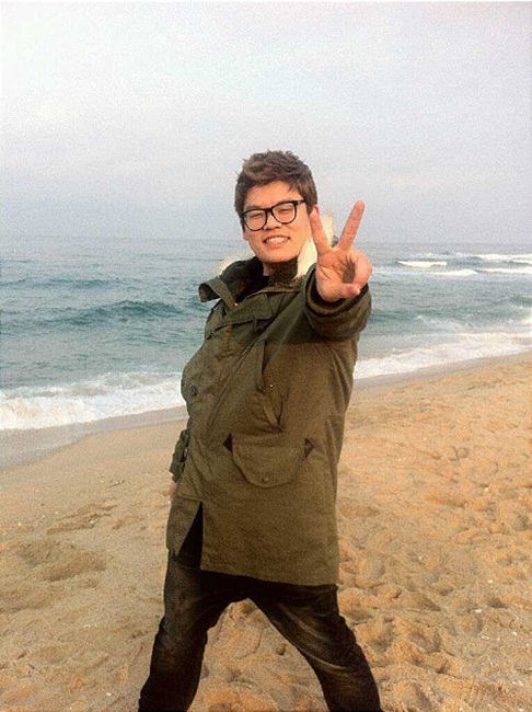 사진 속 이찬성은 바닷가를 배경으로 활짝 웃고 있는 모습. 한 손으로는 브이를 그리고, 두 다리는 어깨 너비로 벌린 채 위풍당당한 포즈를 취하고 있다.