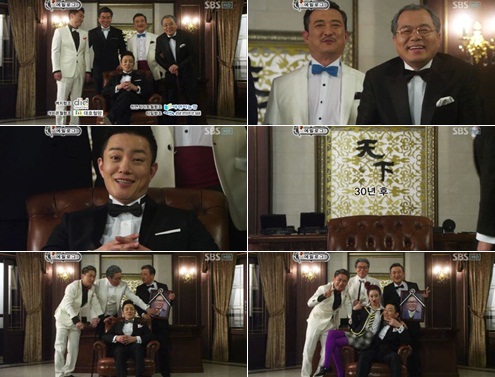 이날 '초한지' 마지막 회 에필로그에서는 천하그룹 회장에 오른 이범수가 임원진(김일우, 유형관, 양형욱, 윤용현)과 기념사진을 찍는 장면이 전파를 탔다.
