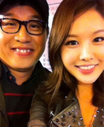 박은지는 지난 13일 오후 자신의 트위터에 "정준하 오라버니와. 오늘 감사했어요~ 준하 오빠 소두 인증!"이라는 글과 함께 한 장의 사진을 게재했다.