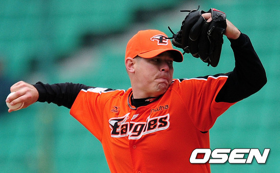 3회말 2사 3루에서 한화 배스가 박찬호에 이어 마운드에 올라 역투하고 있다.
