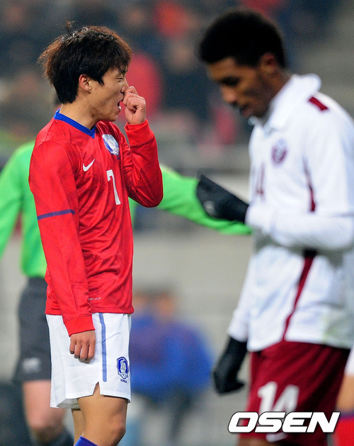 14일 오후 서울월드컵경기장에서 열린 2012 런던 올림픽 아시아지역 최종예선 카타르와의 경기, 후반 한국 서정진이 슈팅이 빗나가자 아쉬워하고 있다.