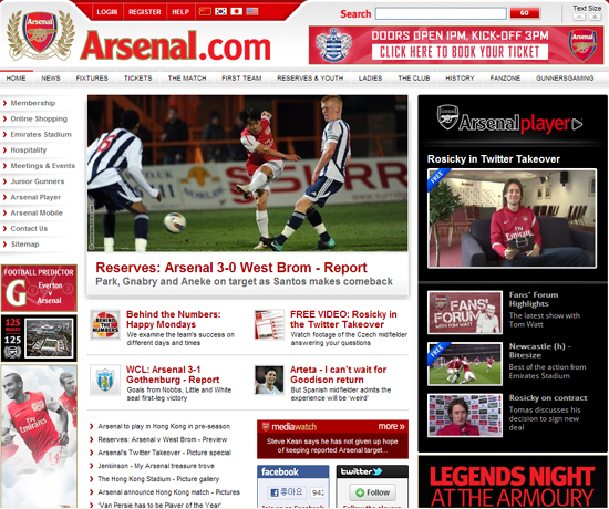 아스날 홈페이지 캡처.