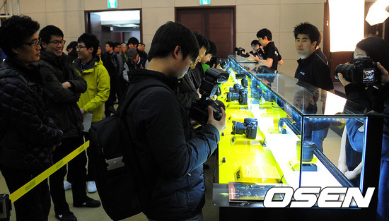 15일 오후 서울 상암동 한국콘텐츠 진흥원에서 진행된 '니콘 디지털 라이브 2012(Nikon Digital Live 2012)에서 소비자들이 카메라를 살펴보고 있다.