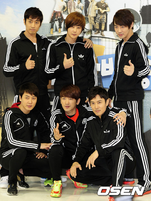 15일 오후 서울 잠실 학생체육관에서 열린 JTBC '신화방송' 현장공개 및 제작발표회에서 신화가 포토타임을 하고 있다.