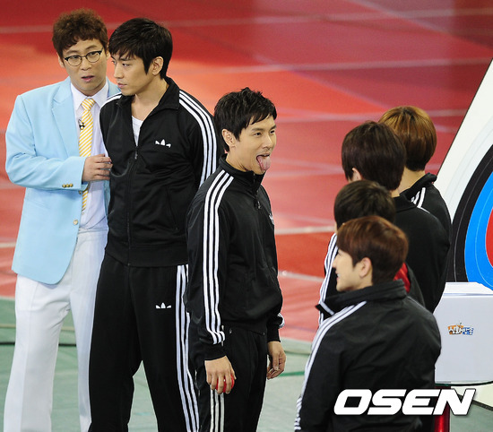 15일 오후 서울 잠실 학생체육관에서 열린 JTBC '신화방송' 현장공개 및 제작발표회에서 신화가 녹화가 잠시 중단된 사이 이야기를 나누고 있다.