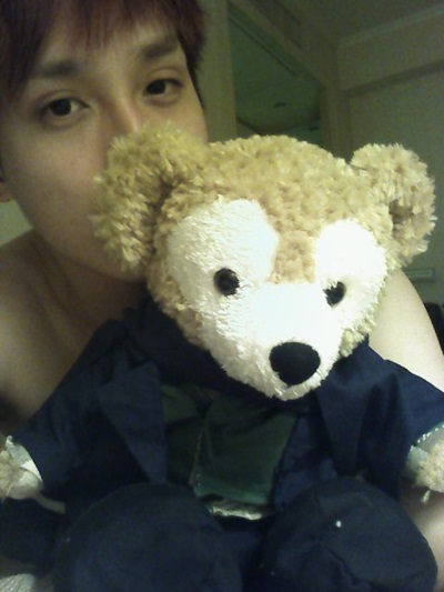 사진 속에는 태헌이 인형을 앞에 내세우고 엎드린 채 카메라를 응시하고 있다. 늦은 시간, 취침 전 셀카임에도 태헌은 피곤한 기색 없이 '훈남 포스'를 뽐내고 있다.