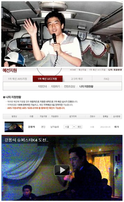 이어 강 의원은 1차 예선 UCC 지원현황이 담긴 ‘슈퍼스타K' 홈페이지 캡처 사진을 비롯해, 직접 출품한 UCC영상을 올렸다.