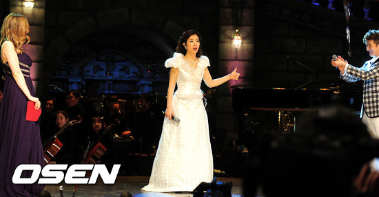 16일 오후 서울 서초동 한전아트센터에서 진행된 스타가수들의 오페라 아리아 서바이벌 tvN '오페라스타 2012' 결승전에서 우승한 차지한 박기영이 발표에 깜짝 놀라고 있다.