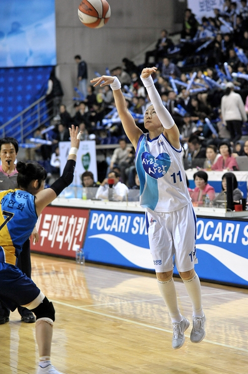 박정은의 이날 득점은 순도 면에서도 200%짜리였다. 특히 1쿼터 종료 3분 여 전 터트린 3점슛은 팀에 17-16의 리드를 안겨준 만점짜리 외곽포였고, 2쿼터서도 하은주의 골밑 장악에 밀려 자칫 경기를 쉽게 내줄수도 있었지만 박정은의 연속 골밑 돌파와 3점포로 분위기를 내주지 않을 수 있었다.