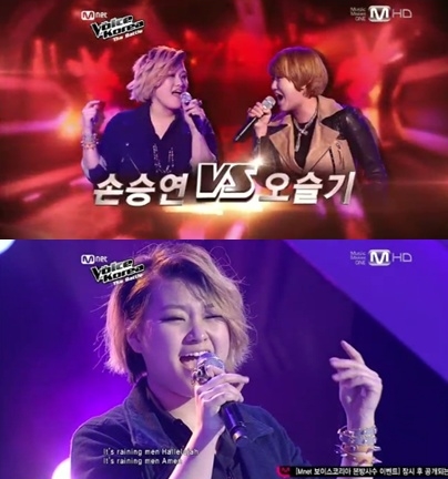 지난 16일 방송된 엠넷 ‘보이스코리아’는 두 번째 배틀라운드가 펼쳐진 가운데 KBS 2TV ‘톱밴드’ 8강까지 진출했던 WMA 보컬 손승연과 예선전에서 돌고래 소리로 화제가 됐던 오슬기가 경연를 벌였다.