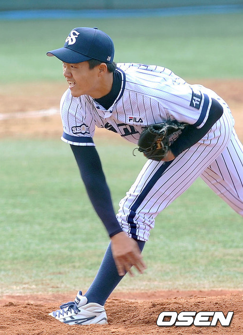 17일 오전 서울 구의동 구의야구장에서 열린 '고교야구 주말리그' 개막전 서울고와 청원고의 경기, 1회말 무사에서 서울고 선발투수 장현식이 힘차게 공을 던지고 있다.