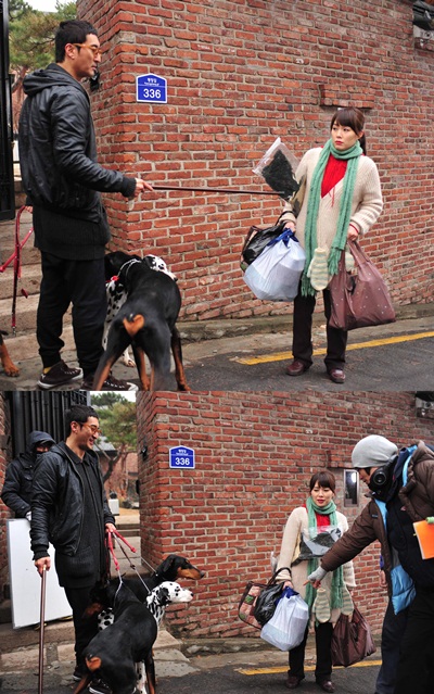 지난 3월 초에는 둘이 극 중 첫 만남을 갖게 되는 내용이 촬영됐다. 당시 빨간 립스틱을 짙게 바른 시골 아줌마 차림의 하희라는 개 3마리를 이끌고 등장하는 신현준 때문에 깜짝 놀라는 연기를 선보였다.
