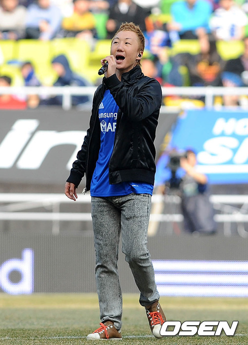 17일 오후 수원 월드컵경기장에서 열린 '현대오일뱅크 K리그 2012' 3라운드 수원 블루윙즈와 강원 FC의 경기, 하프타임 그룹 노브레인이 축하공연을 펼치고 있다.