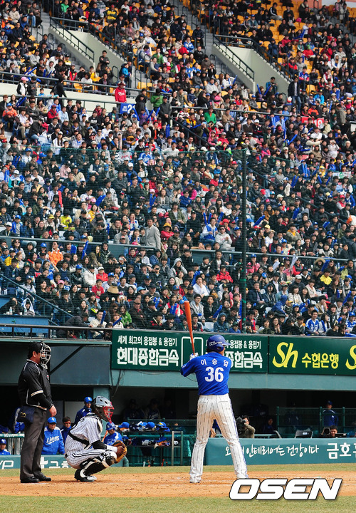 '국민타자' 이승엽은 3번 지명타자로 선발 출장해 5회 1사 2루서 LG 선발 임찬규의 1구째 투심 패스트볼(134km)을 때려 우중월 투런포(비거리 130m)를 쏘아 올렸다. 이날 선발 마스크를 쓴 이정식 또한 4회 투런포를 가동하며 류중일 감독의 눈도장을 받았다.
