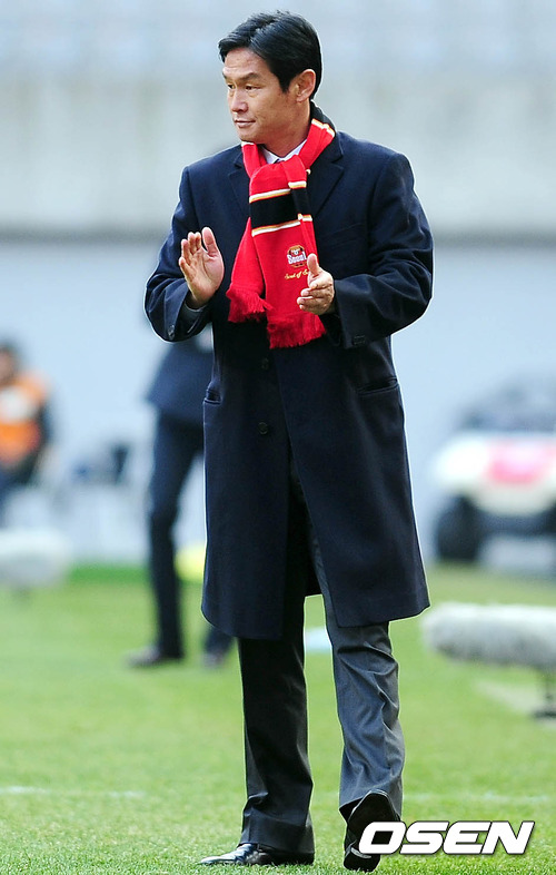 18일 오후 서울월드컵경기장에서 열린 '현대오일뱅크 2012 K리그' FC 서울과 대전 시티즌의 경기 후반 서울 최용수 감독이 선수들을 격려하고 있다.
