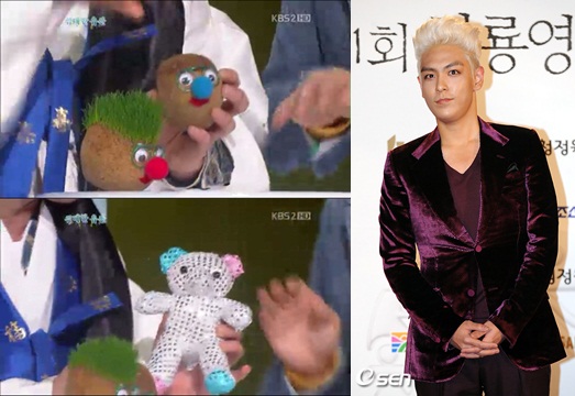 '90년생 이상 공감'이라는 팻말과 함께 등장한 잔디인형은 짧은 직모에 형형색색의 머리를 자랑하고 있어 파격적인 염색 머리로 매번 화제가 되는 그룹 빅뱅 멤버 '탑'의 머리를 연상시켰다.