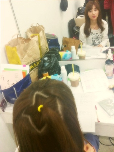 사진 속에서 박하선의 머리 정수리 부분이 별모양으로 묶인 것을 볼 수 있다. 또한 맞은편 거울에 비치는 박하선은 멍한 표정으로 앉아 사진 찍는 것을 지켜보고 있어 웃음을 자아냈다.