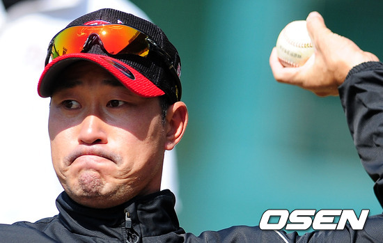 경기전 LG 봉중근이 수비 훈련을 하고 있다.