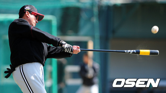 경기전 LG 김기태 감독이 펑고 볼을 쳐주며 수비 훈련을 지도 하고 있다.