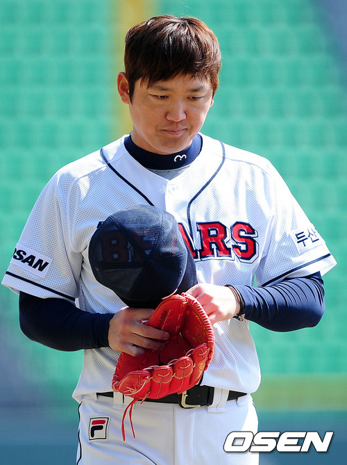 2회초 수비를 마친 두산 김선우가 더그아웃으로 향하고 있다.