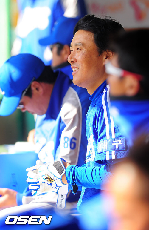 9회초 1사 1루 상황 삼성 이승엽이 삼진아웃된후 더그아웃에서 아쉬운 표정을 짓고 있다/ soul1014@osen.co.kr