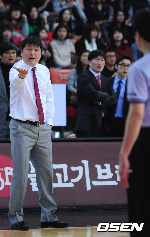 20일 오후 안양 실내체육관에서 열린 '2011-2012 KB국민카드 프로농구' 4강 플레이오프 2차전 안양 인삼공사와 부산 KT의 경기 KGC 이상범 감독이 심판에게 어필을 하고 있다.