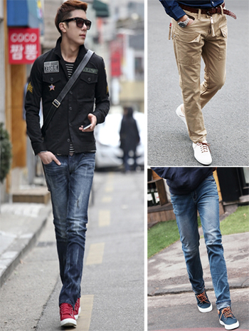급기야 마법의 아이템이라 불리는 키 높이 깔창까지 나왔으니 아마 길거리에 다니는 남자들의 50%이상은 신발 속에 이 비밀병기를 넣어두지 않았을까. 하지만 깔창보다 먼저 신경 써야 할 것이 팬츠이다.