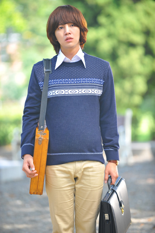 싱그러운 캠퍼스, 살짝 웨이브진 장발머리와 클래식한 옷차림에 화구박스를 매고 있는 장근석. ‘사랑비’ 속 70년대 캠퍼스의 미대생 서인하로 분해 아련한 눈빛으로 누군가를 바라보고 있는 모습은 가슴을 설레게 할 정도다. 더불어 물감이 묻어 있는 앞치마를 두른 채, 가슴에 손을 얹고 있는 그의 모습이 시선을 잡아 끈다.
