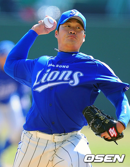 21일 오후 인천 문학구장에서 SK 와이번스와 삼성 라이온즈의 프로야구 시범경기에서 7회말에 마운드에 오른 삼성 오승환이 힘차게 공을 뿌리고 있다.