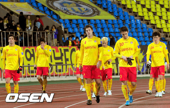 경기종료 후 성남 선수들이 아쉬운 표정으로 경기장을 빠져나가고 있다./ soul1014@osen.co.kr