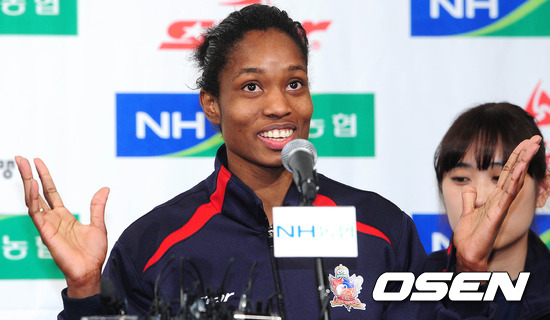 [OSEN = 백승철 기자] 22일 오전 서울 영등포구 여의도동 63컨벤션 센터에서 열린 'NH농협 2011-2012 V리그' 여자부 포스트시즌 미디어데이에서 인삼공사 몬타뇨가 취재진들과 질의응답 시간을 갖고 있다.