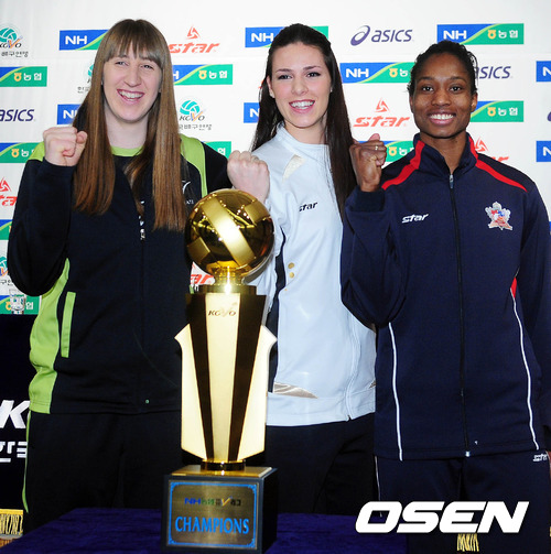 [OSEN = 백승철 기자] 22일 오전 서울 영등포구 여의도동 63컨벤션 센터에서 열린 'NH농협 2011-2012 V리그' 여자부 포스트시즌 미디어데이에서 브란키차 이바나 몬타뇨가 기념촬영을 하고 있다.