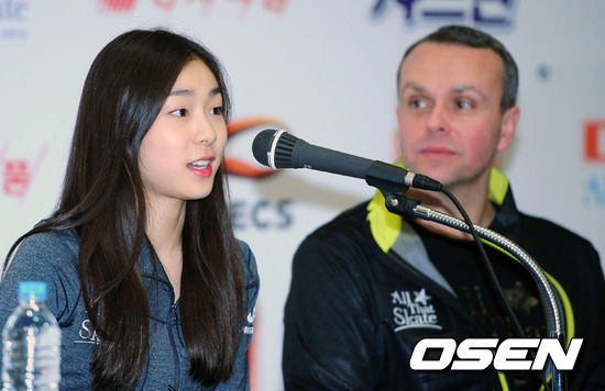22일 오후 태릉 국제스케이트장 2층 국제회의실에서 열린 'E1 올댓 스케이트 스프링 2012' 김연아, 새로운 갈라 프로그램 발표 현장에서 김연아가 질문에 답변을 하고 있다.