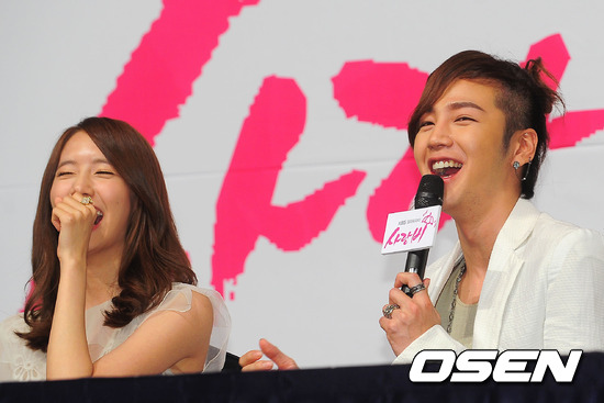 22일 오후 서울 중구 소공동 롯데호텔 크리스탈 볼룸에서 열린 KBS 2TV 새 월화드라마 ‘사랑비' 제작발표회에서 장근석과 윤아가 웃고 있다.