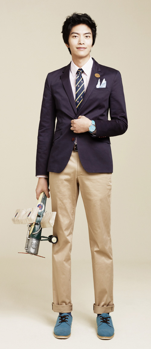 이민기는 연분홍 체크무늬 셔츠를 이너웨어로 입고 행커치프, 버튼 브로치, 워치 등의 소품을 아기자기하게 스타일링함으로써 타이 매칭으로 자칫 무거워질 수 있는 분위기를 센스 있게 연출했다.