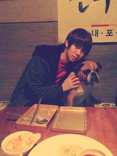 [OSEN=김경민 인턴기자] 그룹 슈퍼주니어 멤버 김희철이 식당에서 강아지와 함께 찍은 인증샷을 공개했다.