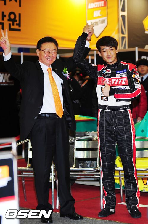 23일 경기도 고양시 일산 킨텍스에서 열린 '2012 오토모티브위크(Automotive Week 2012) 튜닝쇼'에서 록타이트-HK 팀의 레이서 한민관이 록타이트-HK 출정식에 참가하고 있다.