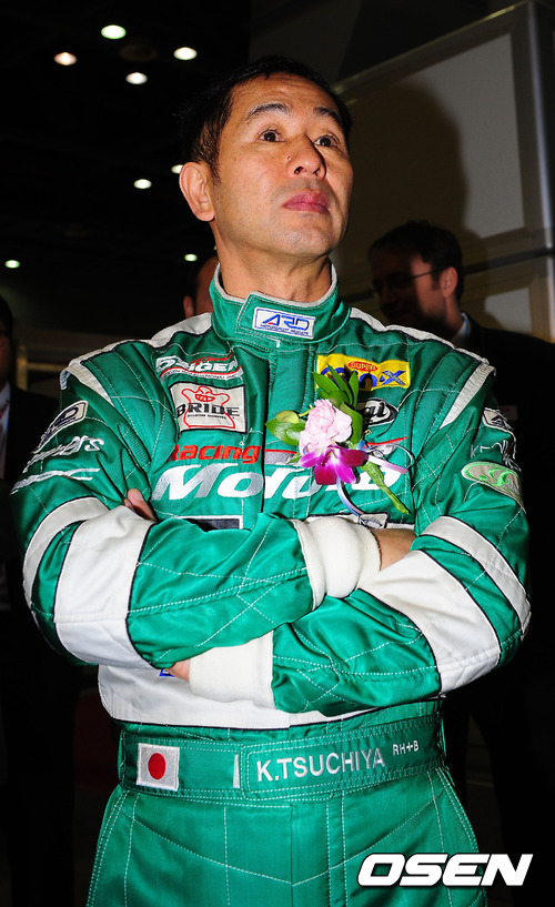 23일 경기도 고양시 일산 킨텍스에서 열린 '2012 오토모티브위크(Automotive Week 2012) 튜닝쇼'에서 드리프트 킹 쓰치야 게이치가 부스를 돌며 설명을 듣고 있다.