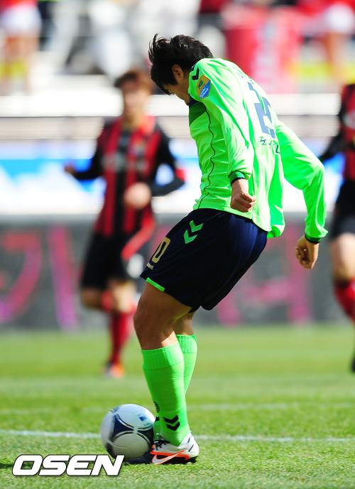 25일 오후 서울월드컵경기장에서 열린 FC 서울과 전북 현대의 '현대오일뱅크 K리그 2012' 4라운드에서 전반 경기 시작 3분 만에 선취골을 넣고 있다.
