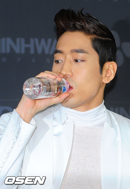25일 오후 서울 올림픽공원 체조경기장에서 열리는 그룹 신화 14주년 콘서트 '더 리턴' 기자회견에서 신화 멤버 에릭이 물을 마시고 있다.