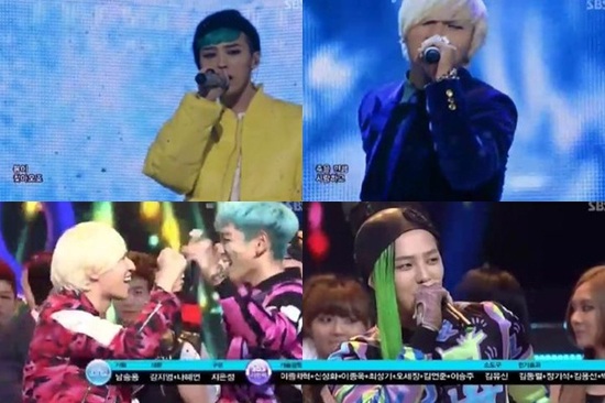 25일 오후 3시 30분 방송된 SBS '인기가요'에 출연한 빅뱅은 곡 '블루'와 '판타스틱 베이비'로 화려한 퍼포먼스를 펼쳤다.