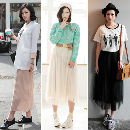하지만 키가 작은 여성이라면 길이가 긴 치마가 오히려 더 작은 키를 부각시킬까 우려하기 마련. 여성의류 쇼핑몰 '티스빈'의 허원 씨는 "코디만 잘 해도 오히려 더 키가 커 보이게 입을 수 있는 마법의 아이템이 롱 스커트"라고 귀띔했다.