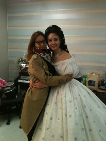 공개된 사진 속에서 이효리와 옥주현은 서로 다정하게 안은 채 미소를 짓고 있다. 이효리는 화장기 없는 자연스러운 얼굴이다. 이어 트렌치코트와 머플러로 코디해 수수한 매력을 뽐냈다. 반면 옥주현은 무대에서 막 내려온 듯, 엘리자벳 황후 의상과 분장을 그대로 하고 있어 여신 자태를 과시했다.