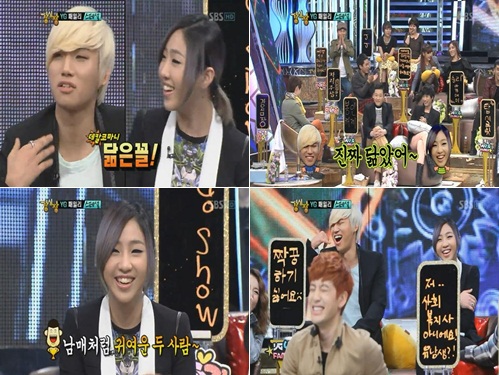 SBS 예능프로그램 '강심장'에 출연한 빅뱅의 대성과 2NE1의 민지가 똑 닮은 외모로 눈길을 끌었다.