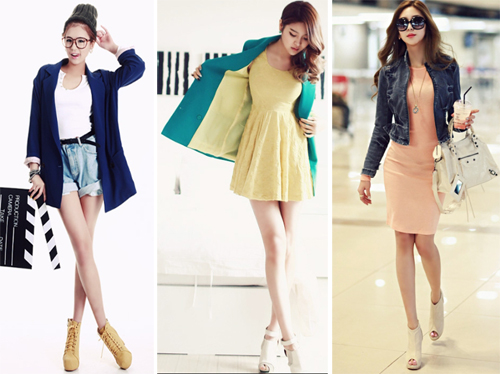 오렌지나 핑크 계열은 블루 컬러와 잘 어울린다. 원피스와 재킷의 코디에 이 두 컬러를 활용하면 여성스러운 느낌을 연출할 수 있다. 팬츠와 아우터의 매치는 시크함이 강조된다. 이때는 아우터 안에 이너를 화이트 컬러로 입는 것이 안정된 느낌을 줄 뿐 아니라 오렌지, 핑크와 블루 컬러의 매치도 부드럽다.