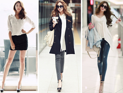 화이트 블라우스와 H라인 스커트, 여기에 블랙 재킷을 매치하면 시크한 커리어우먼 룩이 완성된다. 섹슈얼한 분위기를 원할 때는 몸에 피트 되는 심플한 블랙 티셔츠에 청바지를 코디하면 큰 노력 없이 이미지를 연출할 수 있다.