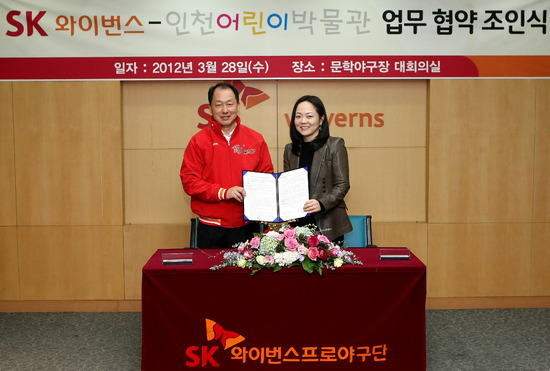 SK 와이번스는 28일 인천어린이박물관(관장 원순미)과 문학야구장 대회의실에서 '와이번스 키즈투어' 업무 협약식을 가졌다.