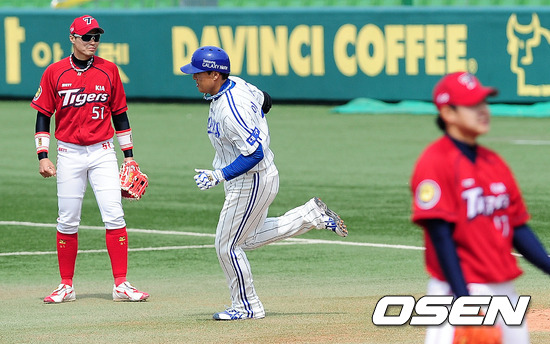 3회말 2사에서 삼성 이승엽이 솔로포를 날리고 그라운드를 돌고 있다.
