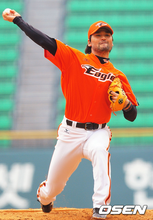 30일 오후 서울 잠실구장에서 LG 트윈스와 한화 이글스의 프로야구 시범경기에서 한화 선발 박찬호가 힘차게 공을 뿌리고 있다.