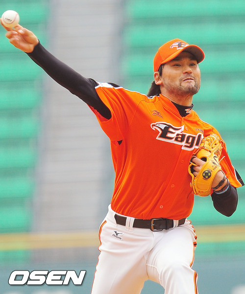 30일 오후 서울 잠실구장에서 LG 트윈스와 한화 이글스의 프로야구 시범경기에서 한화 선발 박찬호가 힘차게 공을 뿌리고 있다.